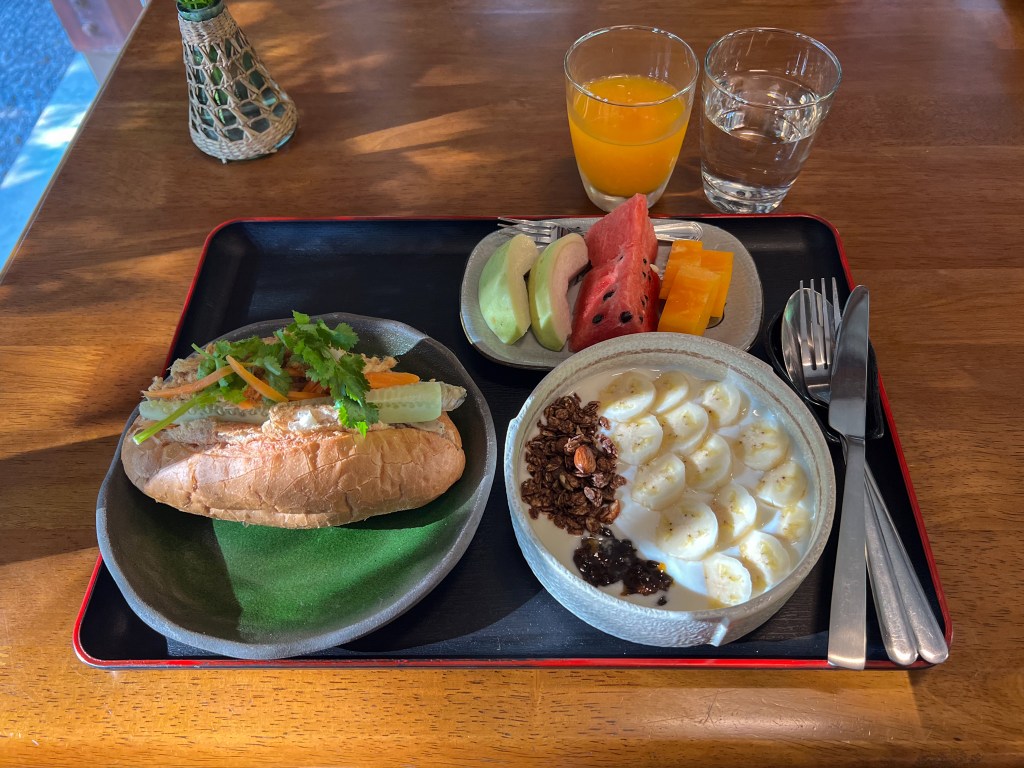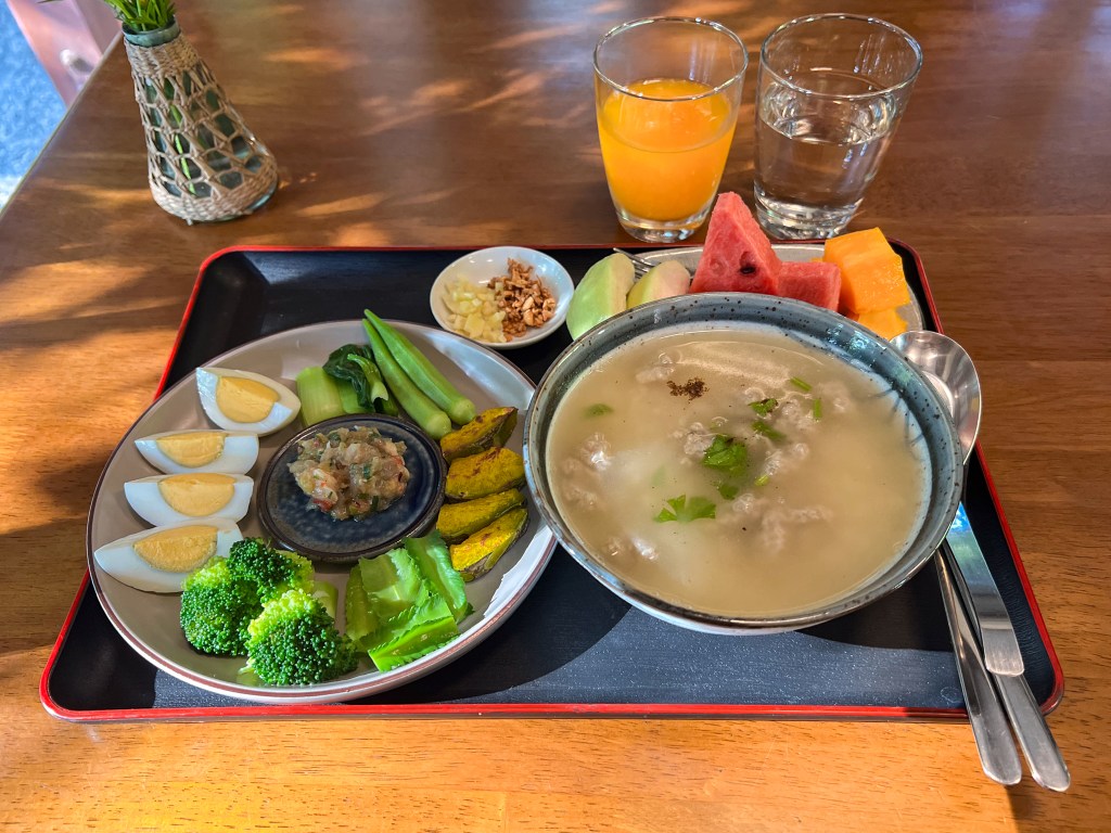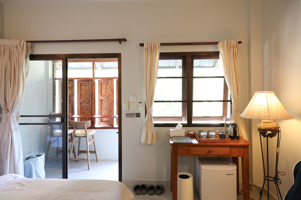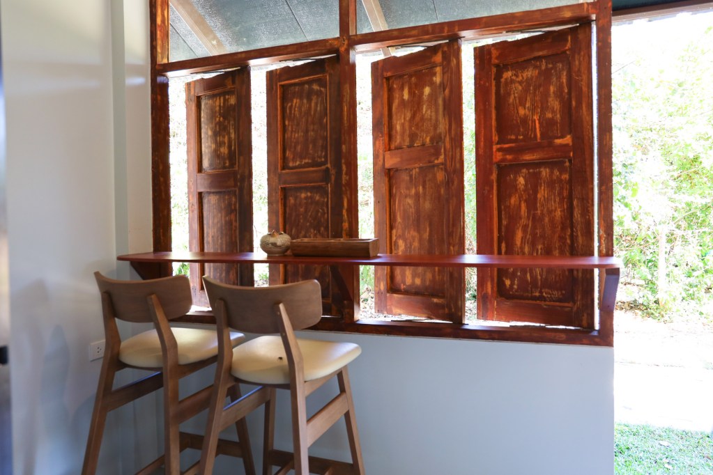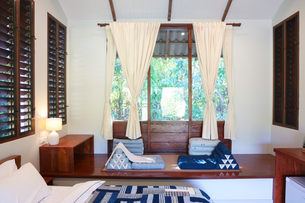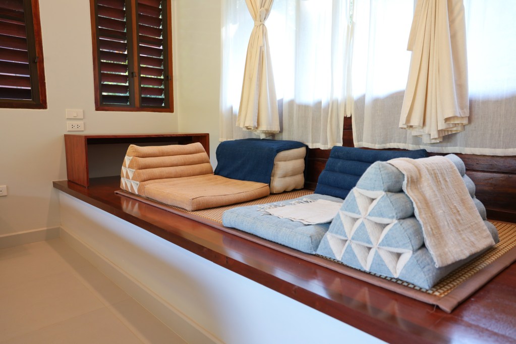 The welcoming area of Pa Na Come Hom. An open space to embrace the forestโs stillness and converse with us on days of rest. The cafรฉ is open on Saturdays and Sundays, serving food and drinks crafted from ingredients with a mindful, honest origin.